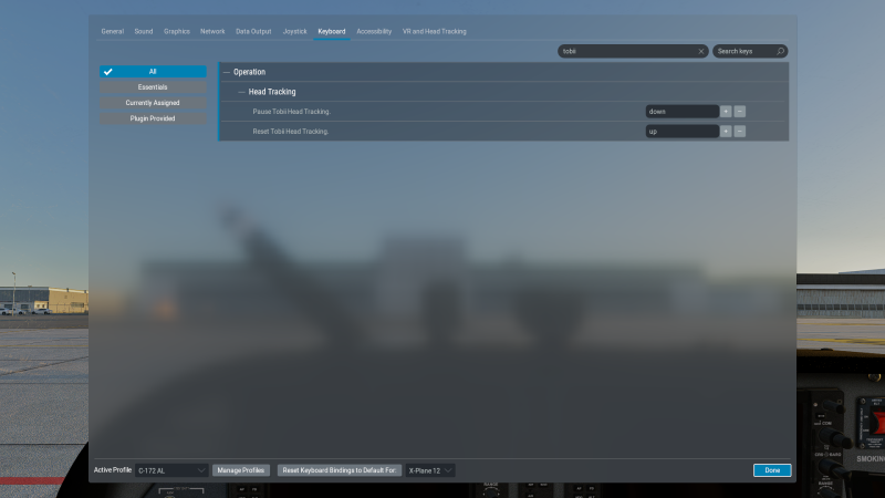Stačí pouze spustit na ploše utilitu Tobii Experience (není zapotřebí cokoli nastavovat), spustit simulátor X-Plane 12, v MENU kliknout na "VR and Head Tracking" a v dialogovém okně vlevo dole v nastavení HEAD TRACKING SETTINGS zakliknout "Enable Tobii Eye Tracker". Následně již stačí přiřadit na klávesnici, nebo na tlačítku joysticku (beranů) "fci reset" a "fci pause" pro příslušné zařízení Tobii Eye Tracker 5. Citlivost doporučuji snížit podle potřeby daného letounu a vybavení v kokpitu přímo v GUI příslušného nastavení Tobii Eye Tracker 5 (viz. screenshoty níže). Celkové nastavení trvá jen 5 minut a můžete začít okamžitě létat.
